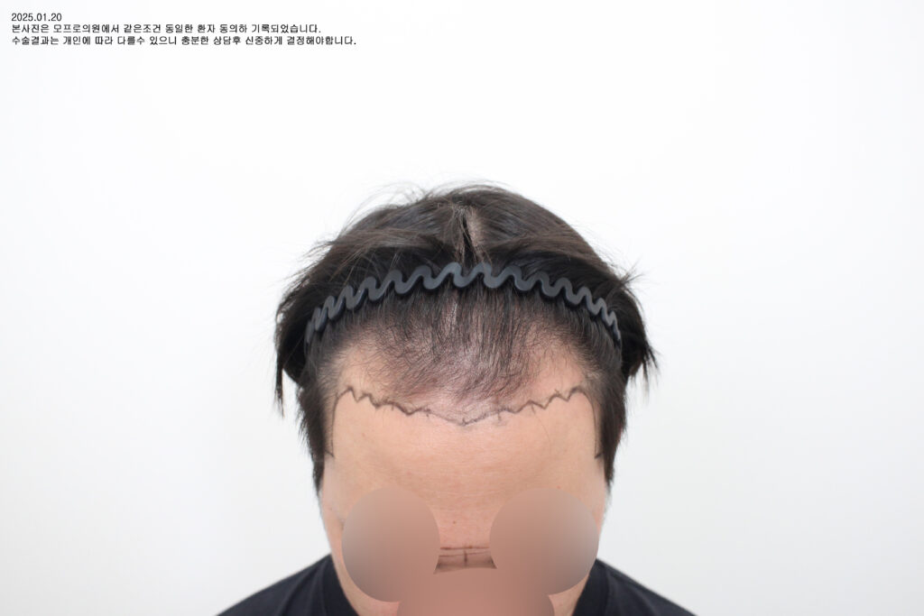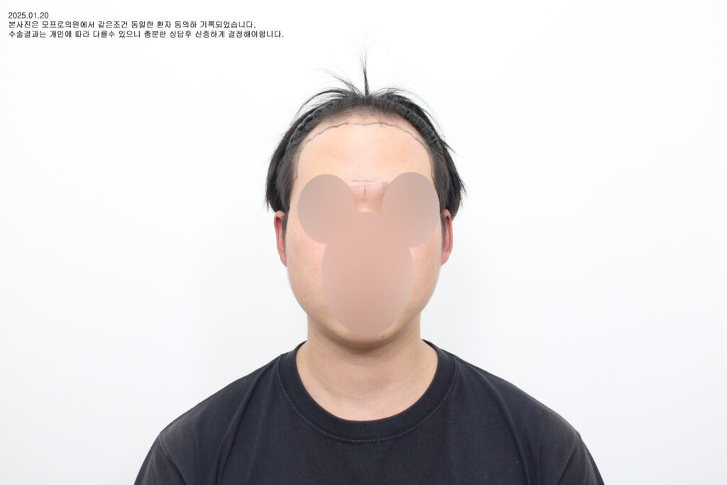 넓어진 전두부와 후퇴한 헤어라인을 동시에 교정하기 위해